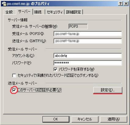 5.デフォルトで「受信メールサーバーと同じ設定を使用する」にチェックされている事を確認し、「OK」をクリックして下さい。