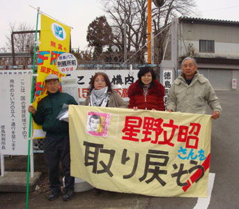 2月5日、晴れ。笑顔で面会室に入ってきた文昭に、杉並救う会の狩野裕子さんが面会を申し込んだけど不許可だったことと、徳島刑務所での寒さ対策を訴えて昼に駅前で座り込み街宣を行ったことを伝えた。