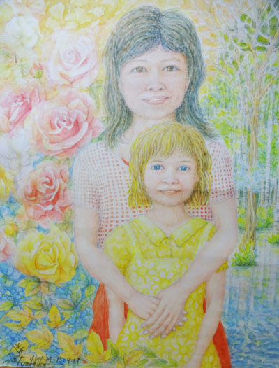 16日 台風が近づいていた。雨が止まなかったが、その分すずしくなった。宅下げした絵「暁子、チェルノブイリの思い・フクシマの思いを抱きしめて」をいっしょに見ながらの面会だ。チェルノブイリの女の子を私が抱きしめている作品だ。コンクールに出していた絵だ。前は3年待たないと戻ってこなかったが、最近は1年で戻ってくるようになった。「いいんじゃない」と私が言うと、「暁子がそう言ってくれるとほっとするんだ」と言った。今までの作品の中で一番いいのではないかと、文昭は言った。