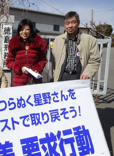 徳島刑務所行動の日。戸村裕実さんと鎌田由子さんの面会が拒否されたことを残念がっていた。